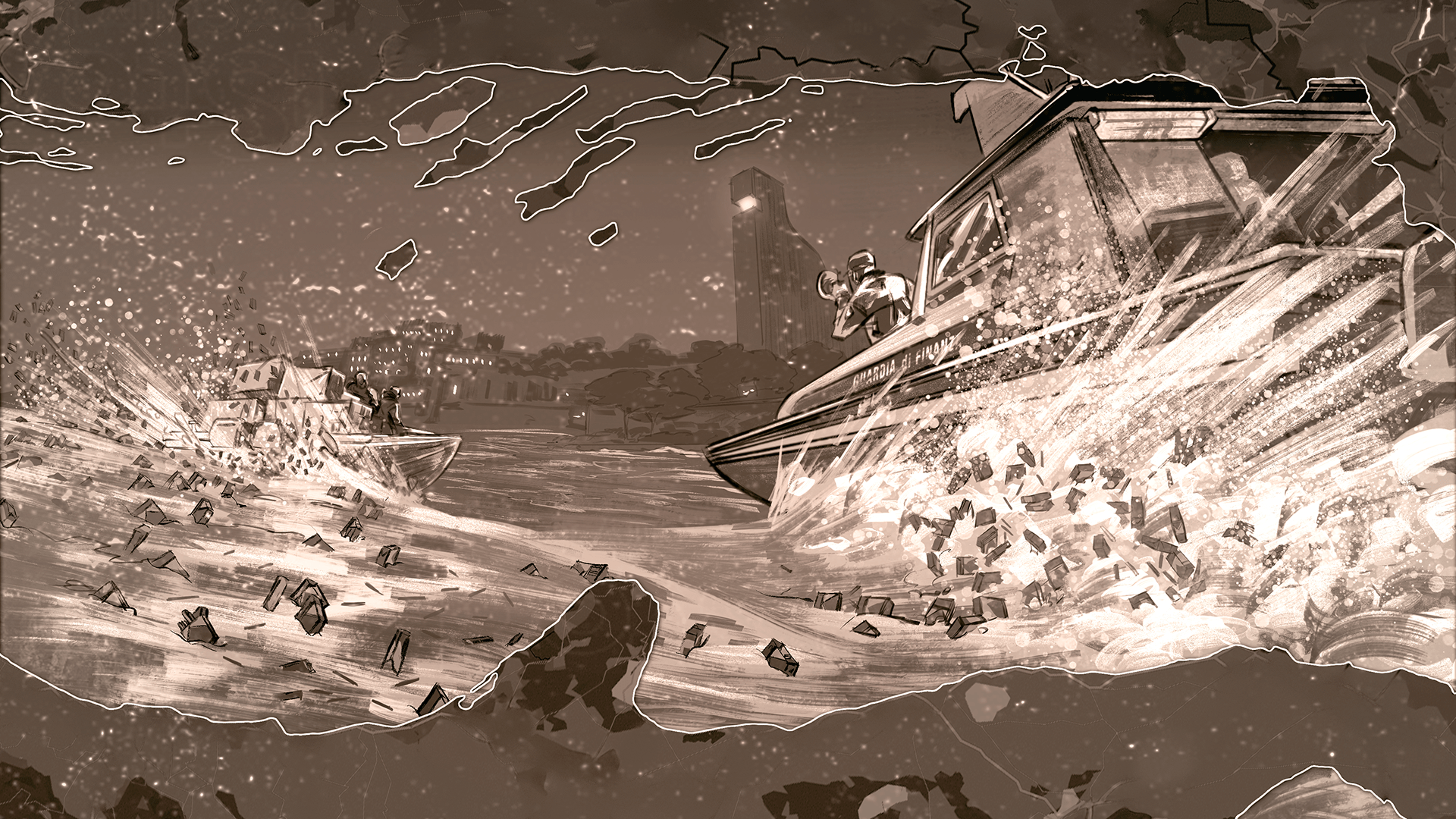 Dopo una curva, le due unità si trovarono di fronte un convoglio di contrabbandieri. Avevano appena caricato i mezzi, in spiaggia, spostando le casse di sigarette dalle barche veloci che erano andate a prelevarle da una nave più grande.
