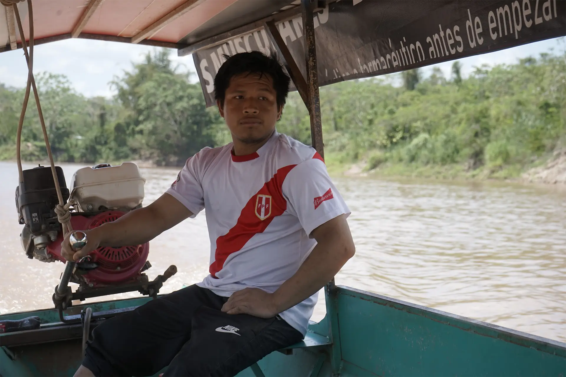 A bordo di un’imbarcazione per raggiungere Pumayacu, sul fiume Ucayali © Michele Calamaio