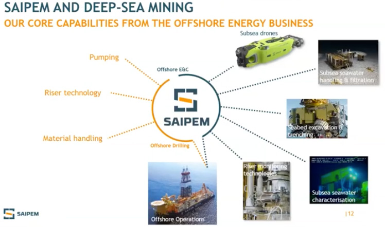 La presentazione di Saipem illustra come l’azienda intenda applicare le proprie tecnologie nel campo del deep sea mining