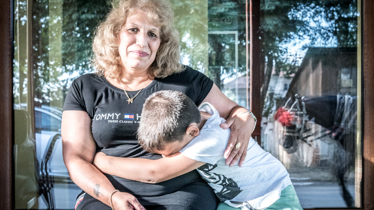 Irina è partita quando i suoi figli erano adolescenti. «Dopo la fine del socialismo, in Bulgaria sono state chiuse molte fabbriche: così siamo rimasti disoccupati e siamo dovuti andare a cercare lavoro all’estero. La sera mia figlia mi chiamava piangendo e mi chiedeva perché l’avessi lasciata sola». Nella foto abbraccia il nipote che vive in Italia © Stefania Prandi