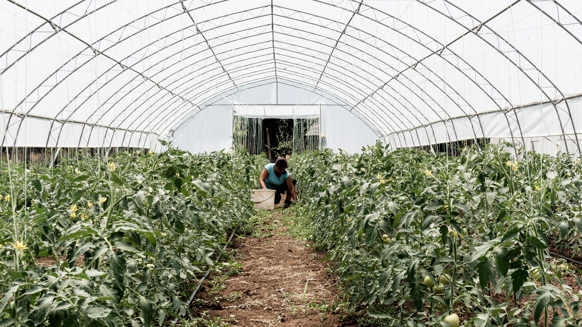 Una lavoratrice in una serra di ortaggi nella provincia di Montana. «La Bulgaria è un Paese a forte vocazione agricola ma i salari sono bassi e i bulgari preferiscono emigrare. Anche chi si laurea in agraria difficilmente decide di restare», spiega Bozhura Fidanska, ricercatrice dell’Istituto di Economie agricole di Sofia © Stefania Prandi