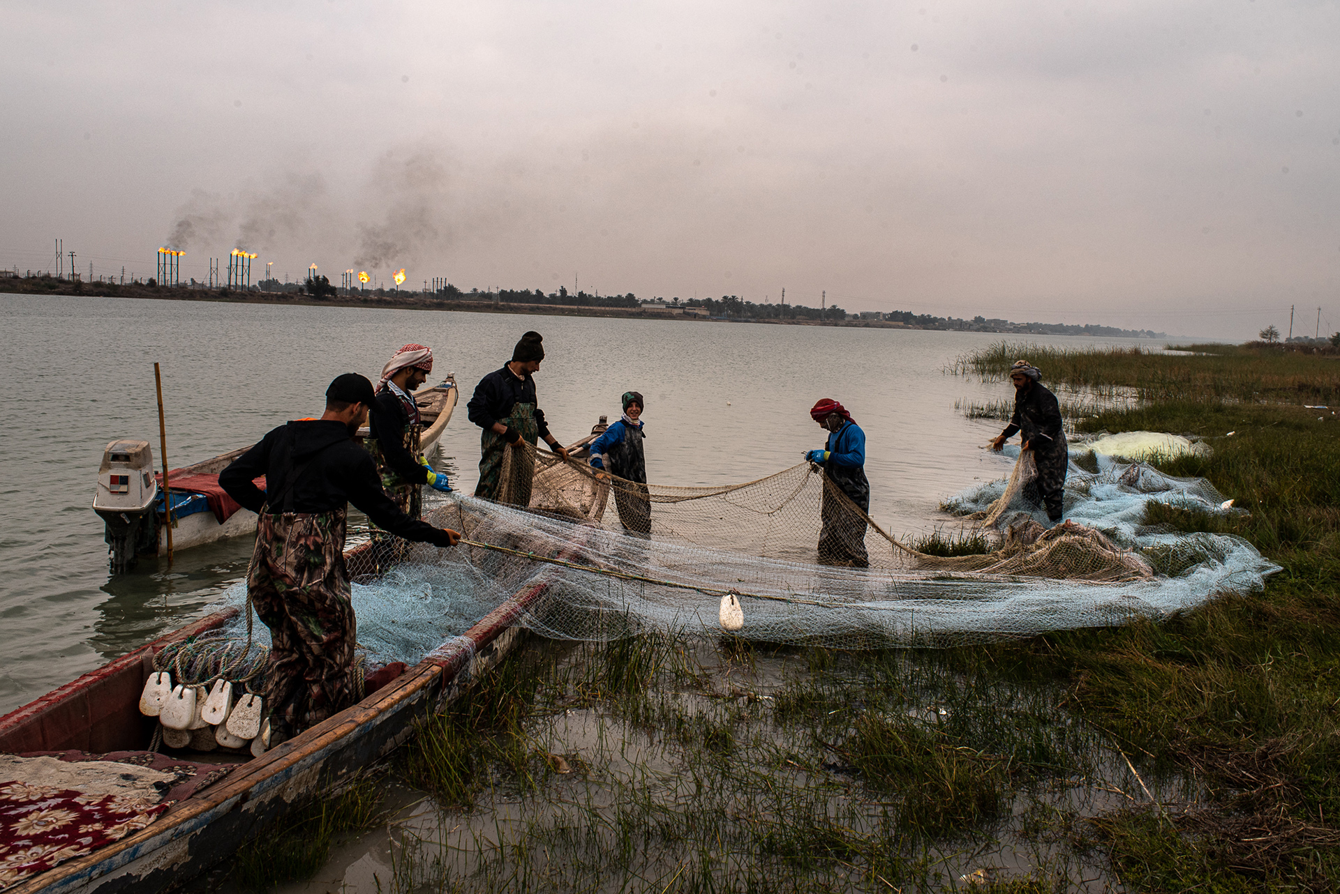 Ogni giorno, alle due di pomeriggio, usciva da casa per andare a gettare le reti con la tradizionale mashuf, una canoa in legno, lunga e stretta, utilizzata come mezzo di trasporto principale dai pescatori di questa zona per navigare canali e paludi. Aspettava il calare del sole e il giorno seguente, alle prime luci dell’alba, le andava a raccogliere. Dei pesci catturati riusciva a guadagnare circa 17.000 dinari al giorno, circa tre euro, una cifra esigua ma sufficiente per mantenere la sua famiglia.