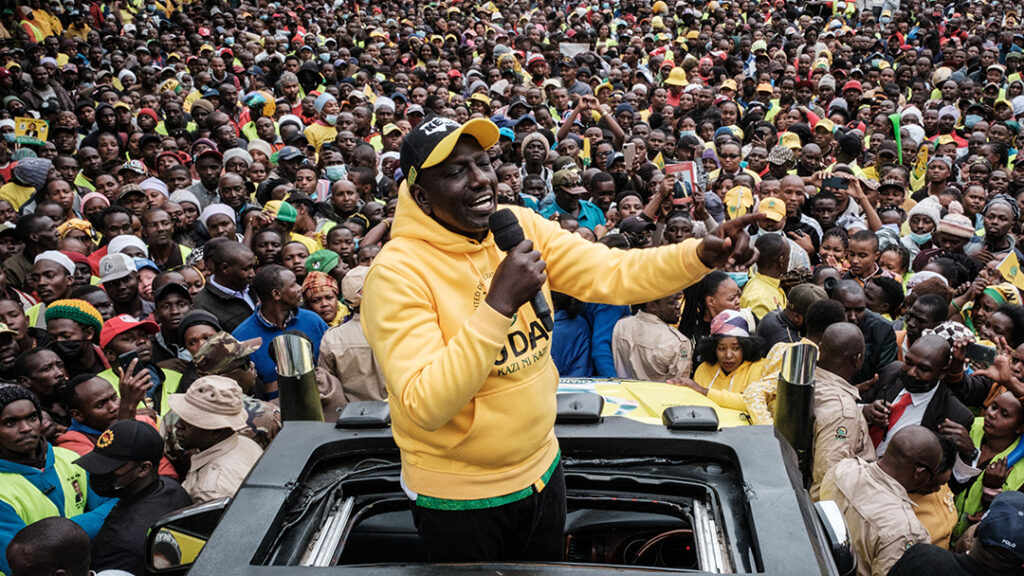 Il Vicepresidente e candidato alle elezioni presidenziali del Kenya, William Ruto, durante un comizio pubblico lo scorso 3 agosto a Thika (Kenya) © Yasuyoshi Chiba/Getty