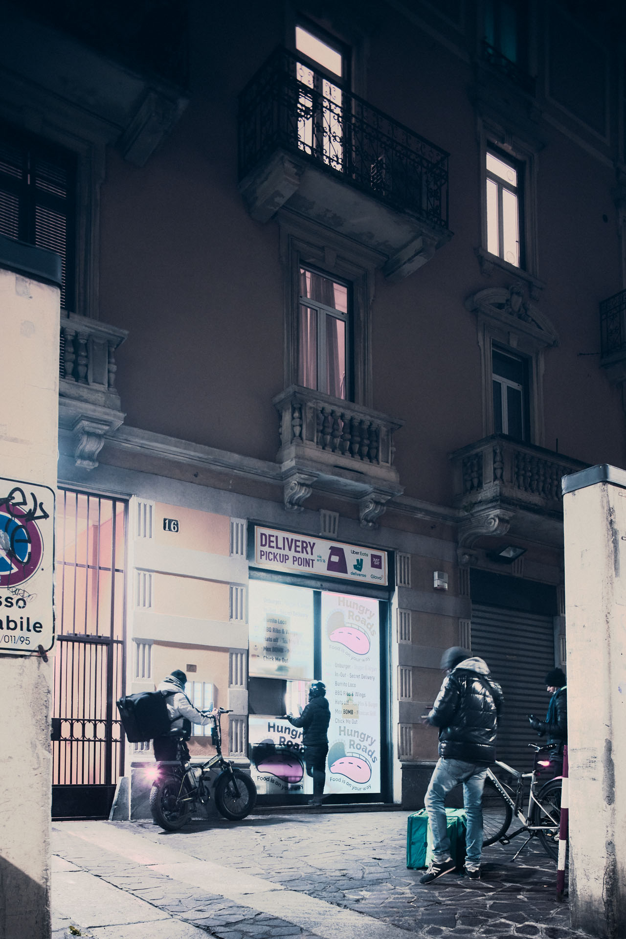 Tra la pandemia da Covid-19 e i lockdown imposti dal governo fino alla fine della primavera scorsa (e a cicli anche successivamente), in un lasso di tempo ridotto il settore della ristorazione ha subìto importanti cambiamenti. Camminando per le strade di Milano da alcuni mesi ci si imbatte sempre di più in piccoli locali agli angoli delle vie, sovente in pieno centro o appena fuori, che si mimetizzano nella giungla urbana. Alle vetrine di questi locali, spesso senza neanche un’insegna, si accalcano, soprattutto nell’orario di pranzo e cena, i rider. Con i loro telefoni in mano si avvicinano al vetro chiedendo un riscontro sulla preparazione dell’ordine che devono ritirare, e si fermano ad aspettare. L’attesa è difficile da stimare. Può dipendere dal ristoratore, che comincia a cucinare il cibo al loro arrivo perché non è sicuro di quanto ci metteranno ad arrivare, oppure dalle piattaforme digitali, che non segnalano la partenza del fattorino. Quando tutto si allinea, ecco una mano che esce fuori dalla vetrina per consegnare il pacchetto.