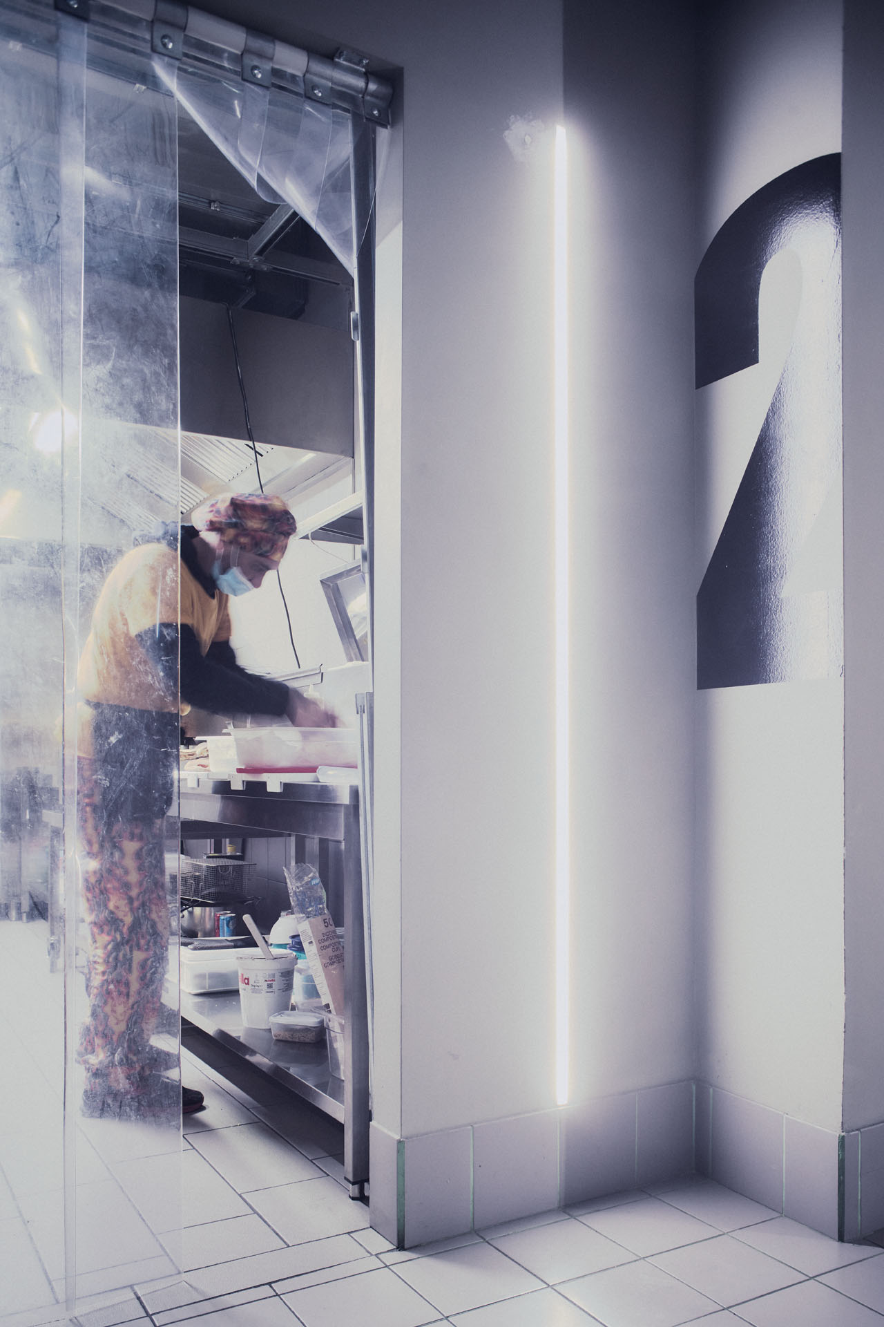 A seconda della cloud kitchen, all’interno i locali sono minimali: una cucina, un bancone e un paio di schermi che, attraverso un gestionale, informano i cuochi del prossimo ordine da realizzare e di quelli in coda, degli ingredienti e dell’orario previsto per il ritiro. All’entrata invece si trova il posto del kitchen manager, la persona che si occupa di gestire i rapporti con e tra le cucine, con i pochi clienti che ordinano per mangiare all’esterno e che fornisce i pacchetti ai rider che bussano al vetro per ritirare l’ordine. A vista controlla anche tutti i dispositivi che, schierati l’uno a fianco dell’altro, si collegano per ogni ristorante virtuale ospitato dalla piattaforma con la quale si distribuiscono i suoi piatti. Sempre accesi e funzionanti, con pulsanti da schiacciare per parlare con le cucine, che squillano ad ogni nuovo ordine.