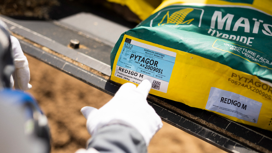 Sui pacchi dei semi di mais sono presenti i nomi dei fungicidi (protioconazolo e metalaxil) ma nessuna istruzione per l’uso © Ed Alcock/MYOP, Le Monde