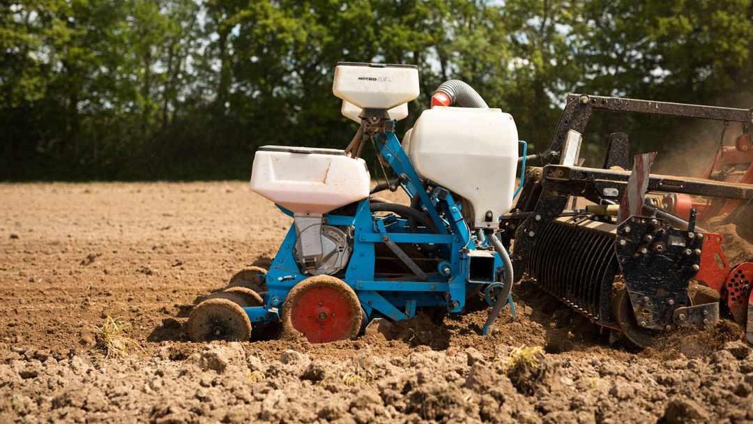 Quando i vani della seminatrice sono pieni, il coltivatore semina il mais © Ed Alcock/MYOP, Le Monde