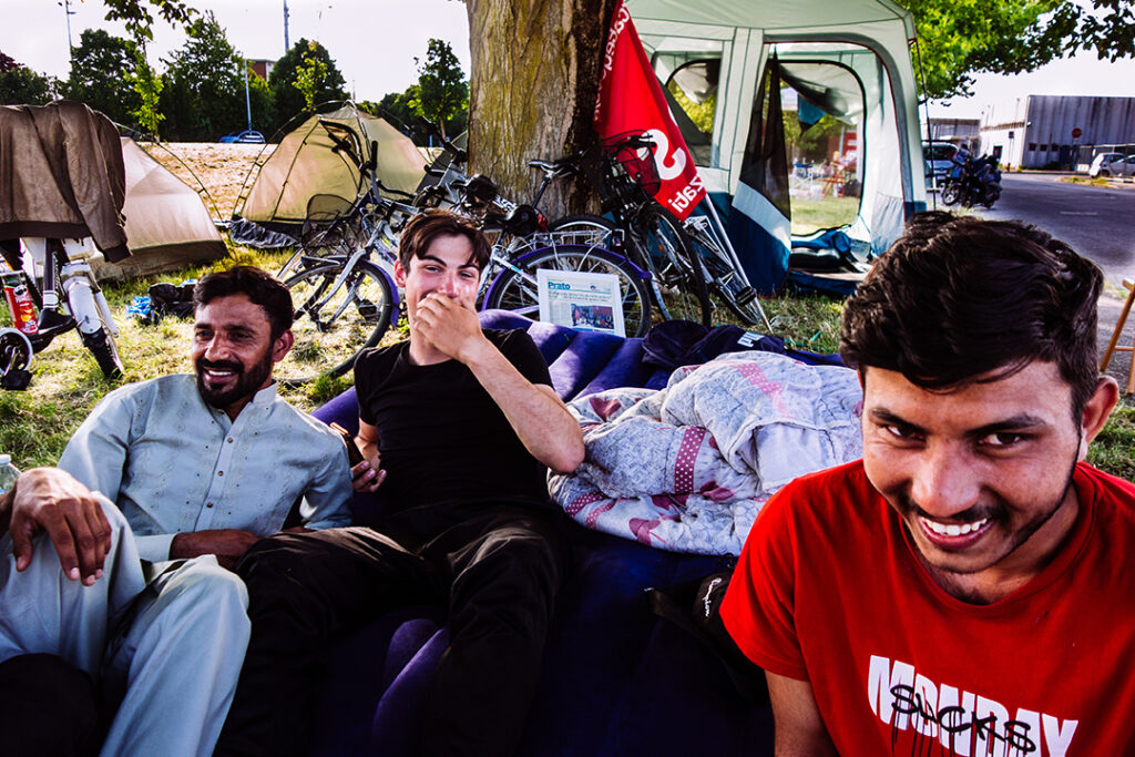 Sarah è una ragazza minuta, con gli occhi chiari incorniciati da un paio di grossi occhiali da vista e lunghi capelli castani raccolti dietro la nuca, ed è anche la coordinatrice pratese di Sì Cobas (Sindacato Intercategoriale Cobas). Quando arrivo, però, lei non c’è. Un minuto dopo mi squilla il telefono. «Scusami, possiamo vederci domani? avevo bisogno di andare a casa, di riposare», mi dice «dormire dentro alle tende sul marciapiede non è il massimo».