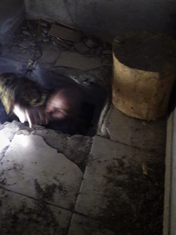 Passiamo la notte tra tunnel, doppifondi, camere di compensazione, blocchi di cemento che scorrono su binari, cunicoli, fango e polvere. Quando emergiamo dalle fogne, l’impressione di essere osservati è netta. Da qualche parte la giovane vedetta è ancora lì.