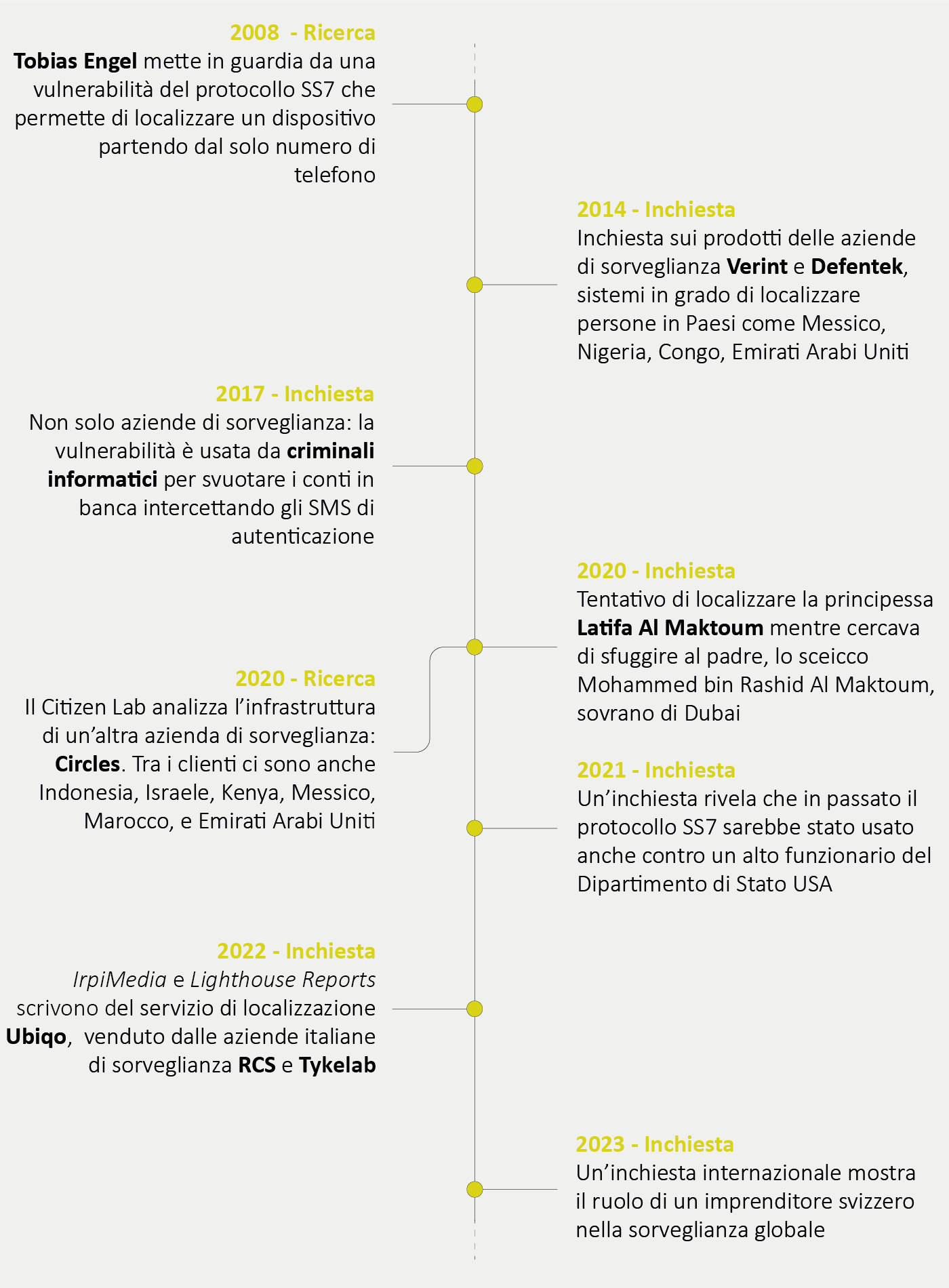 Dal 2008 esperti del settore e inchieste giornalistiche hanno ciclicamente sollevato il problema della vulnerabilità della rete telefonica usata in tutto il mondo. Negli anni sono emerse nuove aziende di sorveglianza ma i governi fanno ancora fatica a decidere come bloccare questa falla