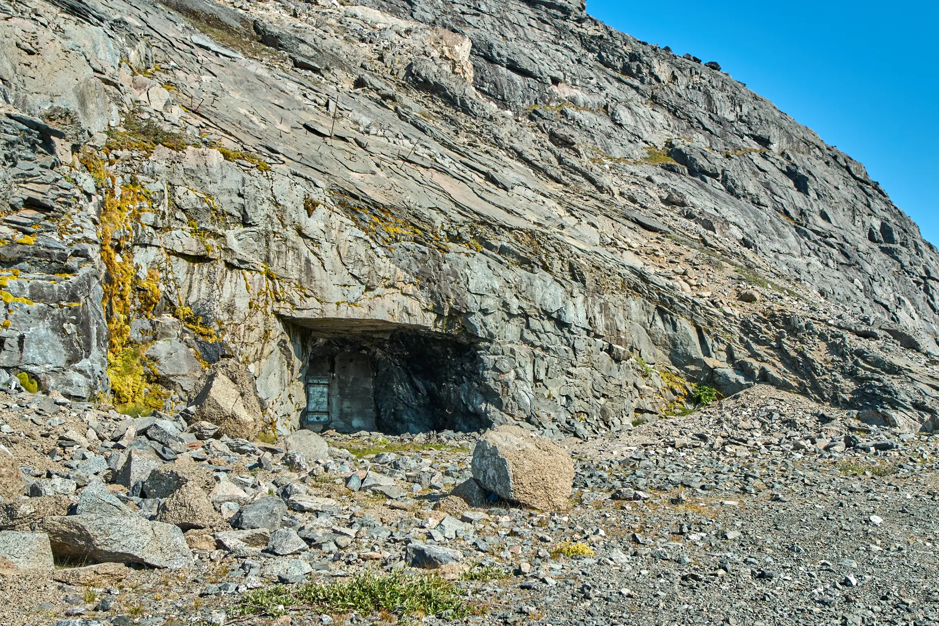 Il sito della miniera, almeno per il momento chiuso e sigillato, si raggiunge via sentiero con una camminata di un’ora abbondante. L’ingresso al ventre della montagna sacra fino al 2021 è stata una piccola porta ormai sigillata. Si trova su una parete di roccia scavata in una sezione rettangolare di circa cinque metri di profondità, altrettanti di larghezza e tre metri scarsi di altezza. Dal “soffitto” di pietra di questa sezione di montagna scavata è un continuo gocciolare d’acqua da più punti, acqua che va a formare delle pozze sul pavimento ricoperto di detriti rocciosi e muschio.