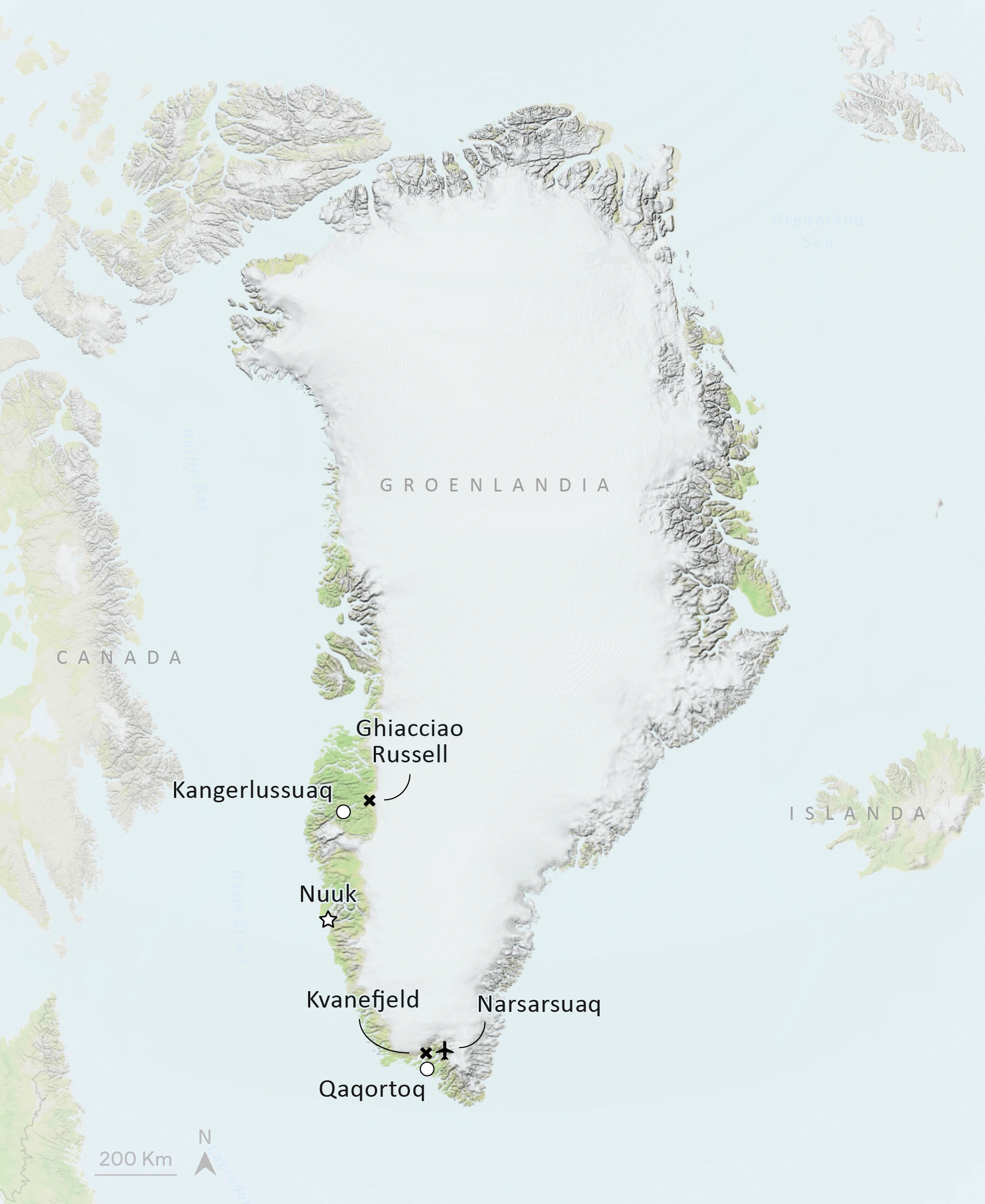 • La Groenlandia è particolarmente colpita dagli effetti dei cambiamenti climatici. L’Artico si sta infatti riscaldando a un ritmo molto più rapido rispetto al resto del mondo