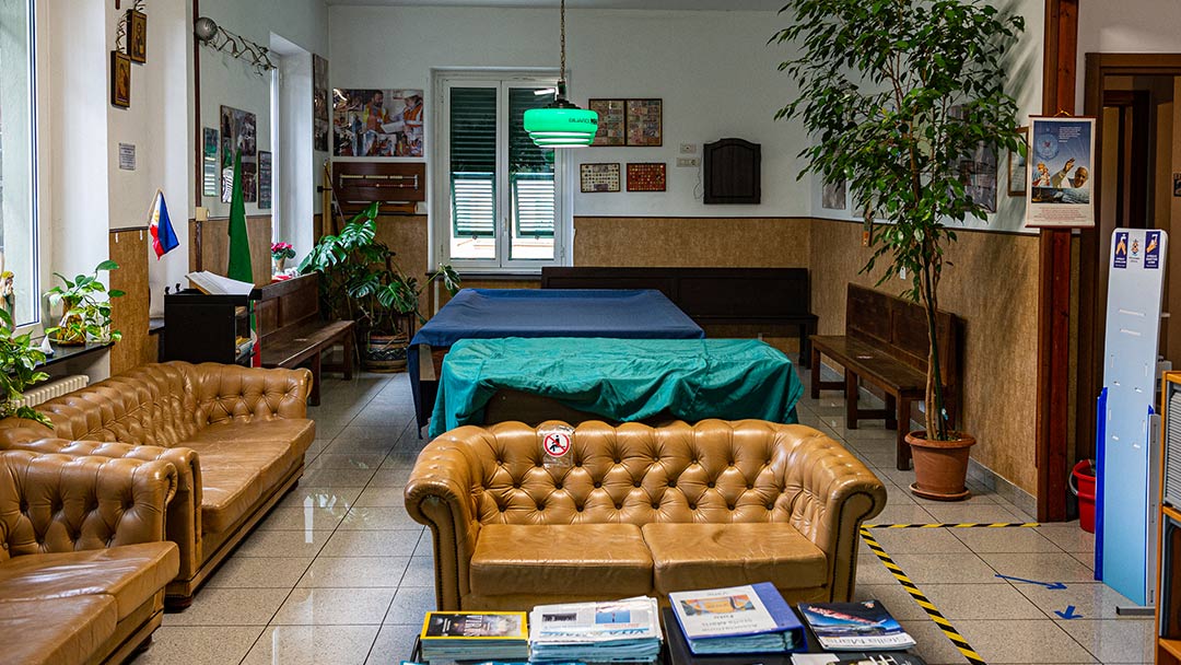 Eros ricorre ai ricordi da quando la casa dell’associazione non può più accogliere nessuno dei marittimi che si fermano al porto di Genova per via delle normative anti-covid imposte in Italia. «Non sappiamo quando riapriremo il club», dice Eros. Evoca lontane presenze che hanno calpestato queste piastrelle anni addietro: un comandante turco venuto a trascorrere in compagnia la vigilia di Natale, un comandante georgiano che aveva bisogno di qualcuno con cui condividere i tormenti di una vita da fedifrago, un marinaio filippino che non riusciva a mettersi in contatto con la propria famiglia e un altro connazionale che, prima che arrivassero gli smartphone, ha visto per la prima volta il volto del proprio figlio dalla webcam del computer. «È questo alla fine quello a cui serviamo», dice Eros.
