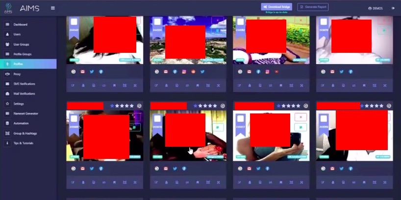 AIMS (Advanced Impact Media Solutions) crea una sorta di album di figurine di account fasulli che possono essere usati a proprio piacimento. Per ciascuno di essi si possono scegliere l’etnia, la lingua, e un set di fotografie per il profilo. Queste foto sono spesso raccolte da database online o rubate da social network come il russo VK, come ha potuto confermare Forbidden Stories nel caso di un avatar che ha copiato le foto del profilo di una donna di origini ungheresi.