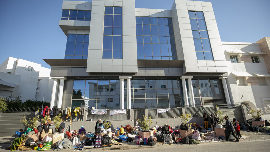 Quel giorno, però, la polizia tunisina mette fine alla protesta dei migranti e smantella il sit-in: nel giro di poche ore, la strada si svuota. Accampamento e striscioni scompaiono, ma non il problema. Solo in 37 trovano posto in un centro d’accoglienza. In tre vengono arrestati, gli altri risultano dispersi. Nel giro di pochi giorni, alcuni di loro tornano ad occupare lo spiazzo di fronte alla sede dell’Organizzazione internazionale per le migrazioni (Oim), a 700 metri dalla sede dell’Unhcr, accanto a chi è in attesa di un appuntamento per il ritorno volontario assistito ed è costretto ad aspettarlo per strada.
