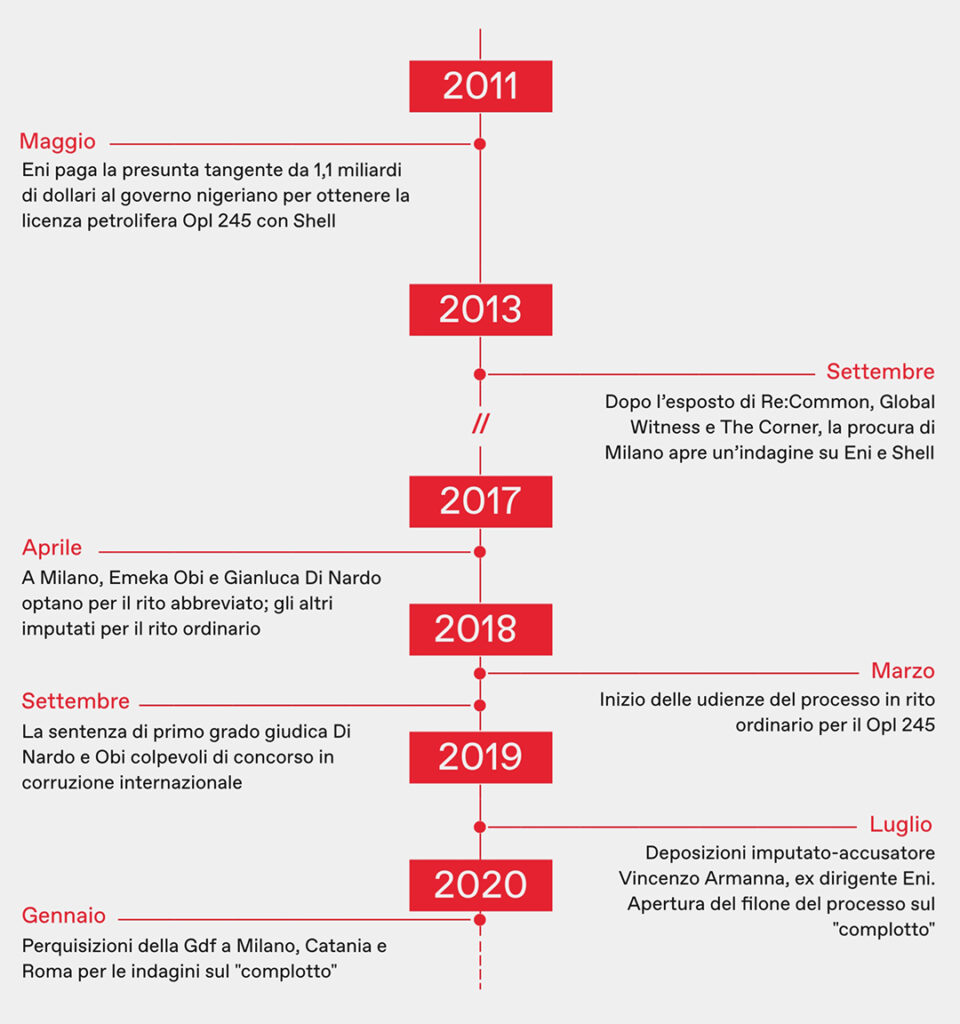 Lo spaccato che ci hanno dato le decine di udienze passa sotto la lente un’intera classe dirigente che per più un decennio ha gestito il lucroso sistema delle aziende italiane partecipate – quali Eni, Enel e Leonardo – che rimangono l’ossatura dei grandi numeri del sistema economico italiano e della capitalizzazione della borsa di Milano. Top manager di bandiera, quali Paolo Scaroni, intermediari sempre verdi vicini alle stanze più alte della politica, quali il pluripregiudicato Luigi Bisignani, pezzi della diplomazia, quali Gianfranco Falcioni, console onorario italiano a Port Harcourt, e personaggi vicini ai servizi segreti, come Vincenzo Armanna. Tutti sodali in un blocco di potere che ha mosso profitti, interferito nella politica in Italia ed all’estero, costruito narrazioni sulle magnifiche sorti dell’Italia nel mondo, e soprattutto guidato la politica energetica, estera e di sicurezza nostrana. Lo Stato parallelo denunciato dai più coraggiosi, che la vicenda Opl245 ha mostrato essere non solo italiano, ma anche olandese, nigeriano e probabilmente di altri paesi. Se si vuole è quella classe dirigente dagli anni 2000 fino alla metà dello scorso decennio oggi a processo, almeno nell’opinione pubblica.